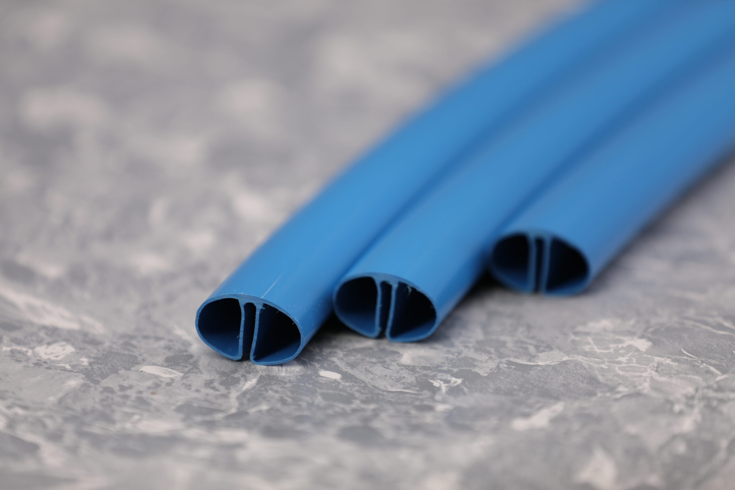 Der aus Kunststoff bestehende Handlauf in blau wird bei Folien mit einer Einhängebiese genutzt. Bei einer Folie mit Keilbiese nutzen Sie den Kombi–Handlauf in weiß.